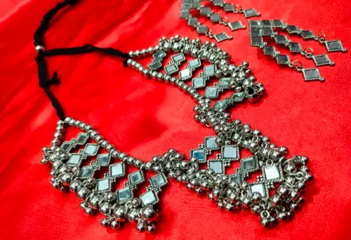 Sale! Previous Product Next Product AKSHITA NECKLACE ₹120.00 Original price was: ₹120.00.₹90.00Current price is: ₹90.00. 99 in stock AKSHITA NECKLACE quantity Add to cart Add to Wishlist Add to Wishlist SKU: N00283 Categories: Above 65, Necklace, Oxidised Necklace, Oxidised Necklace 65 to 100 Tags: MIRROR NECKLACE, NEACKLACE, OXIDISED JEWELLERY, PARTY WEAR NECKLACE, SILVER OXIDISED JEWELLERY Description Reviews (0) Description SILVER OXIDISED MIRROR NECKLACE SET Reviews There are no reviews yet. Be the first to review “AKSHITA NECKLACE” Cancel replyYour email address will not be published. Required fields are marked *Your rating * Rate… Perfect Good Average Not that bad Very poor Your review *Name * Email * Save my name, email, and website in this browser for the next time I comment. Opens in a new window Tweet This Product Opens in a new window Share on Facebook Opens in a new window Pin This Product Opens in a new window Mail This Product Related products Quick View Sale! Quick View Above 65, Necklace, Oxidised Necklace, Oxidised Necklace 65 to 100PRIYANKA NECKLACE ₹90.00 Original price was: ₹90.00.₹70.00Current price is: ₹70.00. Add to cart Add to Wishlist Add to Wishlist Quick View Sale! Quick View Above 65, Kundan Necklace, Necklace, Oxidised Necklace, Oxidised Necklace 65 to 100PALAK NECKLACE ₹100.00 Original price was: ₹100.00.₹80.00Current price is: ₹80.00. Add to cart Add to Wishlist Add to Wishlist Quick View Sale! Quick View Above 65, Necklace, Oxidised Necklace, Oxidised Necklace 65 to 100EZRA NECKLACE ₹100.00 Original price was: ₹100.00.₹60.00Current price is: ₹60.00. Add to cart Add to Wishlist Add to Wishlist