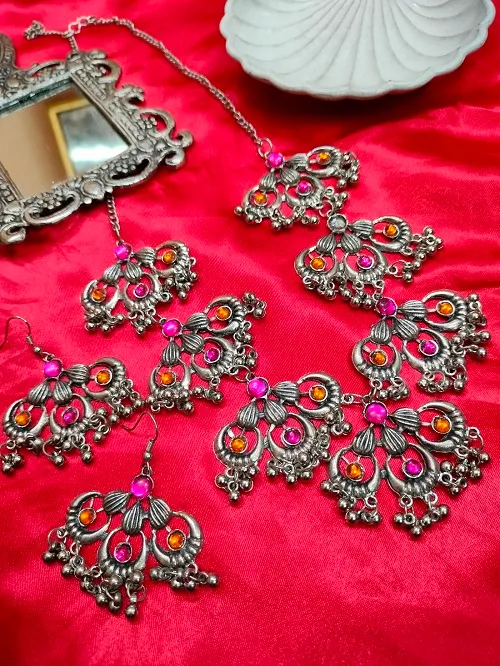 Previous Product Next Product ARISTEA NECKLACE This product is currently out of stock and unavailable. SKU: N00229 Categories: Above 65, Necklace, Oxidised Necklace, Oxidised Necklace 65 to 100 Tags: necklace, OXIDISED JEWELLERY, OXIDISED NECKLACE, PARTY WEAR JEWELLERY, STONE NECKLACE Add to Wishlist Add to Wishlist Description Additional information Reviews (0) Description SILVER OXIDISED WHITE STONE NECKLACE SET Additional information color PINK ORANGE, SKY BLUE Reviews There are no reviews yet. Be the first to review “ARISTEA NECKLACE” Cancel replyYour email address will not be published. Required fields are marked *Your rating * Rate… Perfect Good Average Not that bad Very poor Your review *Name * Email * Save my name, email, and website in this browser for the next time I comment. Opens in a new window Tweet This Product Opens in a new window Share on Facebook Opens in a new window Pin This Product Opens in a new window Mail This Product Related products Quick View Sale! Quick View Above 65, Necklace, Oxidised Necklace, Oxidised Necklace 65 to 100PARKER NECKLACE ₹90.00 Original price was: ₹90.00.₹70.00Current price is: ₹70.00. Add to cart Add to Wishlist Add to Wishlist Quick View Sale! Quick View Above 65, Necklace, Oxidised Necklace 65 to 100VIRUSHI NECKLACE ₹100.00 Original price was: ₹100.00.₹80.00Current price is: ₹80.00. Add to cart Add to Wishlist Add to Wishlist Quick View Sale! Quick View Above 65, Black Polish Necklace, Necklace, Oxidised Necklace, Oxidised Necklace 65 to 100SOPHIA NECKLACE ₹120.00 Original price was: ₹120.00.₹100.00Current price is: ₹100.00. Add to cart Add to Wishlist Add to Wishlist