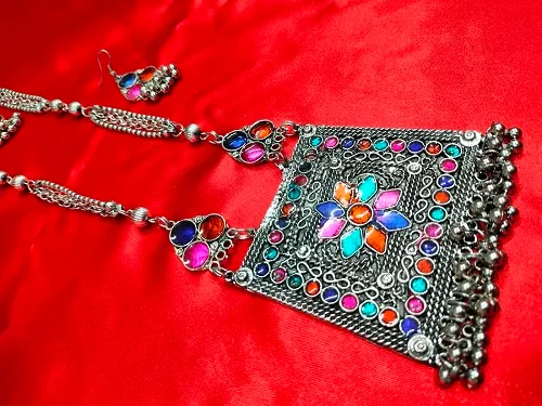 Sale! Previous Product Next Product DANIYAAR NECKLACE ₹180.00 Original price was: ₹180.00.₹150.00Current price is: ₹150.00. 99 in stock DANIYAAR NECKLACE quantity Add to cart Add to Wishlist Add to Wishlist SKU: N00135 Categories: Above 65, Necklace, Oxidised Necklace, Oxidised Necklace Above 100 Tags: LONG NECKLACE, MULTI COLOUR LONG NECKLACE SET Description Reviews (0) Description SILVER OXIDISED MULTI LONG NECKLACE SET Reviews There are no reviews yet. Be the first to review “DANIYAAR NECKLACE” Cancel replyYour email address will not be published. Required fields are marked *Your rating * Rate… Perfect Good Average Not that bad Very poor Your review *Name * Email * Save my name, email, and website in this browser for the next time I comment. Opens in a new window Tweet This Product Opens in a new window Share on Facebook Opens in a new window Pin This Product Opens in a new window Mail This Product Related products Quick View Sale! Quick View Above 65, Necklace, Oxidised Necklace, Oxidised Necklace 65 to 100LEAH NECKLACE ₹90.00 Original price was: ₹90.00.₹60.00Current price is: ₹60.00. Add to cart Add to Wishlist Add to Wishlist Quick View Sale! Quick View Above 65, Necklace, Oxidised Necklace, Oxidised Necklace 65 to 100EZRA NECKLACE ₹100.00 Original price was: ₹100.00.₹60.00Current price is: ₹60.00. Add to cart Add to Wishlist Add to Wishlist Quick View Sale! Quick View Above 65, Necklace, Oxidised Necklace, Oxidised Necklace 65 to 100HALA NECKLACE ₹100.00 Original price was: ₹100.00.₹80.00Current price is: ₹80.00. Add to cart Add to Wishlist Add to Wishlist