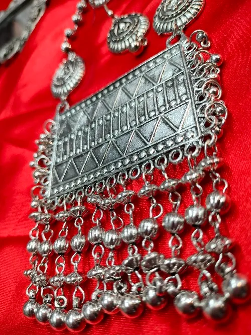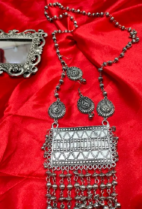 OXIDISED SILVER COLOUR LONG NECKLACE SET