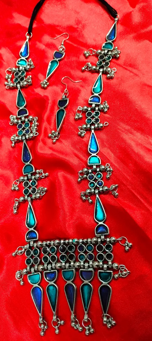 OXIDISED MEENA KARI LONG NECKLACE SET