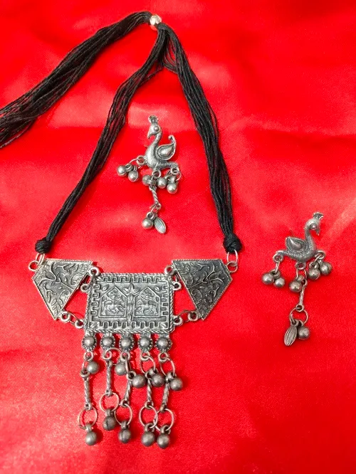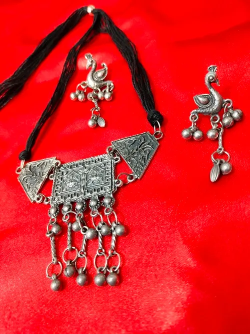 OXIDISED BLACK POLISH CHOCKER WITH EARRING