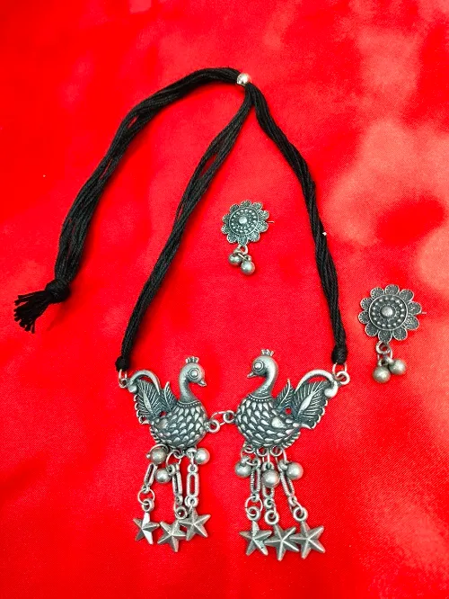 OXIDISED BIRD DESIGN MATTE BLACK CHOCKER WITH EARRING