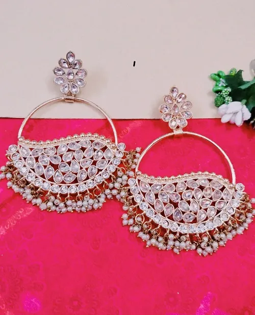 OXIDISED BIG PARTY WEAR STONE EARRING