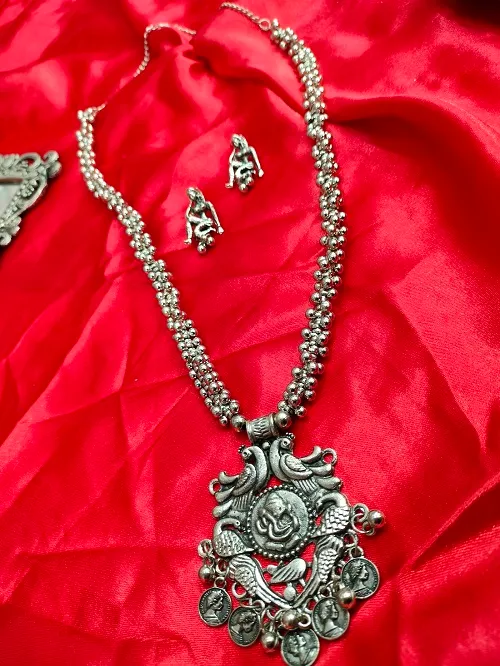 OXIDISED LONG CHAIN NECKLACE WITH ANTIQUE EARRING