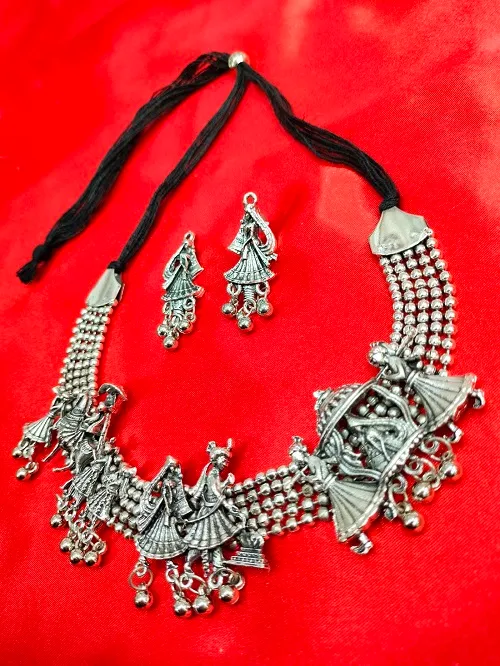 OXIDISED STYLISH NECKLACE SET WITH EARRING