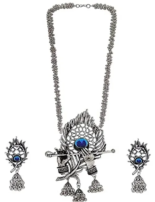 OXIDISED GRISHNA LONG CHAIN NECKLACE WITH EARRING