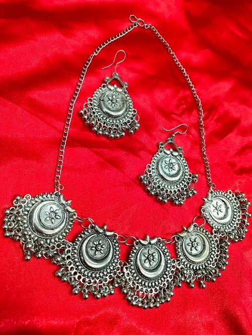 SILVER OXIDISED NECKLACE SET WITH EARRING