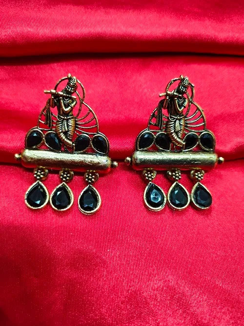 OXIDISED STONE EARRING